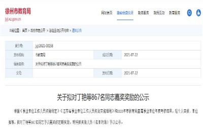 教育熱點:7月22日徐州市教育局官網(wǎng)發(fā)布關(guān)于擬對丁艷等867名同志嘉獎獎勵的公示有你認(rèn)識的嗎?速來圍觀