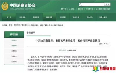 中消協(xié)消費(fèi)提示:校外培訓(xùn)不是必選項(xiàng)