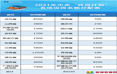 教育熱點:近日,教育部、財政部印發(fā)《關(guān)于做好2021年農(nóng)村義務(wù)教育階段學(xué)校教師特設(shè)崗位計劃實施工作的通知》(點擊左下角“閱讀原文”可查看),明確2021年全國計劃招聘特崗教師84330名,重點向