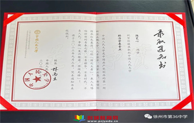 中國人民大學(xué)向徐州市第三十六中學(xué)發(fā)來錄取喜報(bào)!