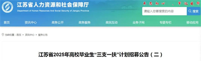 彭城教育:7月23日江蘇省人社廳網(wǎng)站發(fā)布江蘇省2025年高校畢業(yè)生“三支一扶”計(jì)劃招募公告(二)經(jīng)省“三支一扶”工作領(lǐng)導(dǎo)小組研究決定,2025年江蘇省高校畢業(yè)生“三支一扶”計(jì)劃招募面試考察合