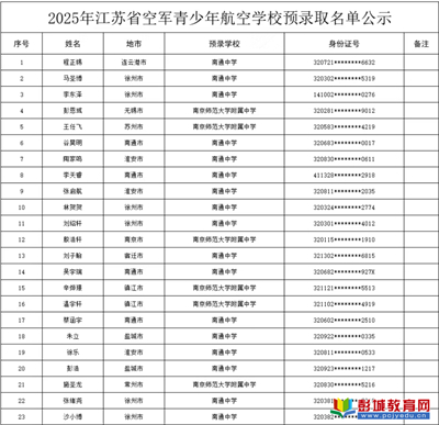江蘇省空軍青少年航空學(xué)校預(yù)錄取名單公示