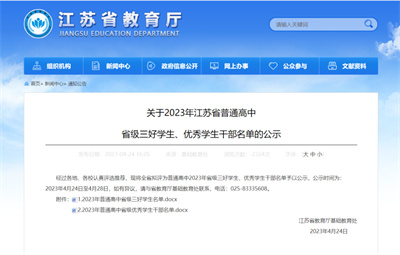 徐州教育:經(jīng)過各地、各校認(rèn)真評選推薦,現(xiàn)將全省擬評為普通高中2023年省級三好學(xué)生、優(yōu)秀學(xué)生干部名單予以公示,公示時間為:2023年4月24日至4月28日,如有異議,請與省教育廳基礎(chǔ)教育處聯(lián)系,