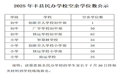 徐州教育:2025年豐縣民辦學(xué)校空余學(xué)位數(shù)公示