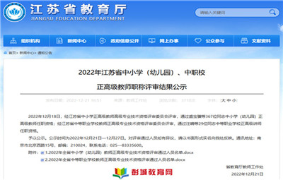 2022年江蘇省中小學(xué)(幼兒園)、中職校正高級教師職稱評審結(jié)果公示