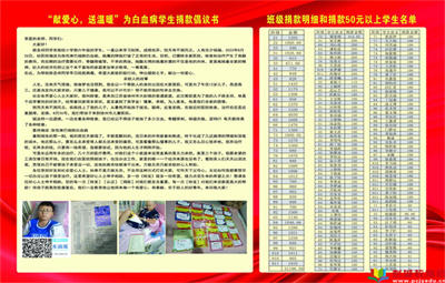 教育熱點:“伸出援助之手,共同幫助這位苦命的孩子戰(zhàn)勝病魔;捐出一份零錢,獻出一份愛心,托起一份希望,延續(xù)孩子生命……”9月19日至21日,在新星校園,全校師生為薛圣祥同學(xué)進行募捐活動