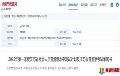 教育熱點:1月4日徐州市教育局網(wǎng)站發(fā)布2022年第一季度江蘇省社會人員普通話水平測試計劃及江蘇省普通話考試承諾書報名時間、測試時間一定趕緊來看看吧徐州有2個測試地點:徐州市第八中學(xué)徐州高
