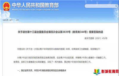 彭城教育:教育部日前對政協(xié)《關(guān)于進一步落實青少年抑郁癥防治措施的提案》進行了答復(fù),其中明確將抑郁癥篩查納入學(xué)生健康體檢內(nèi)容,建立學(xué)生心理健康檔案,評估學(xué)生心理健康狀況,對測評結(jié)