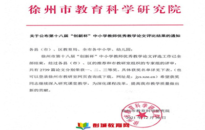 教育熱點(diǎn):奮學(xué)樂教勤耕耘,碩果芬芳佳績傳!徐州市第十八屆“創(chuàng)新杯”中小學(xué)教師優(yōu)秀教學(xué)論文評比結(jié)果公布,學(xué)校9名教師憑借出色的科研能力、扎實(shí)的教學(xué)功底在本次大賽中脫穎而出,喜獲佳績
