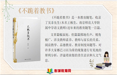徐州教育:4月26日,漢王實驗小學“知更鳥”書友會的解菲菲老師帶來好書分享《不跪著教書》,讀完這本書,解老師談了自己的三點收獲。讀書收獲之一:教育的責任“教育的每一個細節(jié)都可能影響