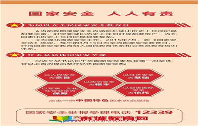 彭城教育:全民國家安全教育日(NationalSecurityEducationDay)是為了增強(qiáng)全民國家安全意識,維護(hù)國家安全而設(shè)立的節(jié)日。2015年7月1日,全國人大常委會通過的《中華人民共和國國家安全法》第十四條規(guī)定