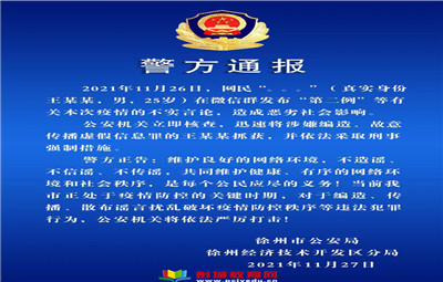 警方通報:徐州一網(wǎng)民涉嫌編造、故意傳播虛假信息被采取刑事強(qiáng)制措施