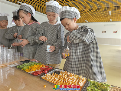 彭城教育:幸福始于美食卻不止于美食。潘安湖中心幼兒園大班開展了美食周——自制水果布丁活動(dòng)。果凍是小朋友的最愛,今天就讓我們自己來做無添加的布丁吧!在布丁里加入自己喜歡的水果,口