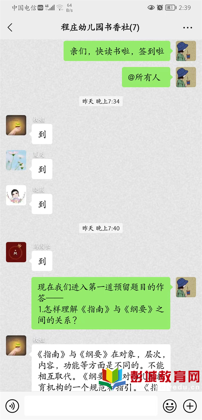 靜心讀書,用心成長——大彭鎮(zhèn)程莊幼兒園書香社《幼兒園課程概論》第二章線上共讀活動(dòng)
