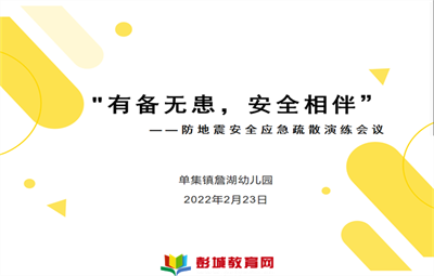 彭城教育:為進(jìn)一步加強(qiáng)防震減災(zāi)安全教育,初步培養(yǎng)全體師幼防震減災(zāi)安全意識,單集鎮(zhèn)詹湖幼兒園于2022年2月23日開展防震安全應(yīng)急疏散演練活動。為確保演練順利有序開展,幼兒園制定了詳細(xì)的《