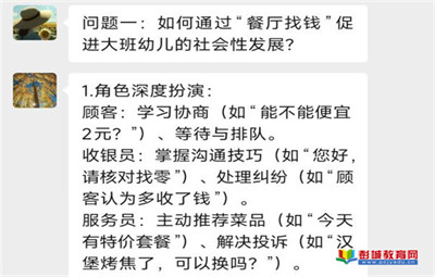 教育熱點:近期,躍進幼兒園開展了一場別開生面的線上讀書活動,教師們圍繞《幼兒園自主游戲觀察與記錄》中“餐廳找錢”“爭當收銀員”“愛請客的小貝”三個大班案例展開深入研討。活動中,