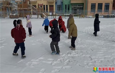 彭城教育:《3-6歲兒童學(xué)習(xí)與發(fā)展指南》中提到:幼兒要有適應(yīng)較冷或較熱環(huán)境的能力。冬季下雪是幼兒熟悉的自然景象,雪地活動能充分激發(fā)幼兒的探索興趣與活動熱情,孩子們在探索中感受季節(jié)變