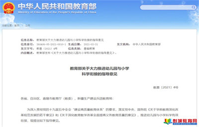 教育熱點:幼小銜接是小學和幼兒園相互呼應的過程。做好小幼銜接,是實現(xiàn)基礎教育高質(zhì)量發(fā)展的關(guān)鍵之一?!督逃筷P(guān)于大力推進幼兒園與小學科學銜接的指導意見》(2021年)提出了“兒童為本”