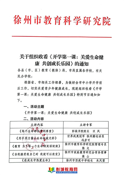 徐州教育:為做好開學前準備工作,切實關(guān)愛青少年健康成長,劉集鎮(zhèn)棉布小學積極響應(yīng)上級號召,于8月31日組織全體師生及學生家長收看《開學第一課:關(guān)愛生命健康共創(chuàng)成長樂園》特別節(jié)目。主講