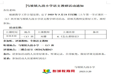 展語文課堂風(fēng)采,促教學(xué)能力成長——馬坡鎮(zhèn)九段小學(xué)舉行一年級語文聽課活動