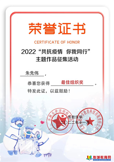徐州市銅山區(qū)漢王鎮(zhèn)北望小學(xué)獲得樂教樂學(xué)平臺(tái)2022“共抗疫情,你我同行”主題作品征集活動(dòng)“最佳組織獎(jiǎng)”