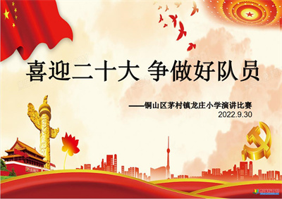 教育熱點(diǎn):為喜迎黨的二十大順利召開,進(jìn)一步弘揚(yáng)愛國主義精神,培養(yǎng)學(xué)生的愛國主義情感。豐富學(xué)生的校園文化生活。茅村鎮(zhèn)龍莊小學(xué)9月30日中午在多媒體報告廳舉行了“喜迎二十大爭做好隊(duì)員”主題演講比賽。