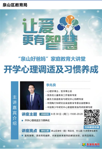 教育熱點:暑假已逝,開學(xué)在即。徐州市泉山區(qū)教育局在開學(xué)之初,請到了李兆良專家為全體教師及家長答疑解惑關(guān)于開學(xué)的心理以及習(xí)慣的養(yǎng)成。李兆良專家語言幽默,深入簡出,通過各種實例對學(xué)