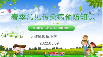 徐州教育:春季是各種傳染病的高發(fā)季節(jié),而少年兒童為傳染病的高發(fā)人群。為了有效預防春季傳染病,做好學生健康知識的宣傳教育與日常學習、生活的個人防護工作。2022年5月9日大許鎮(zhèn)板橋小學開