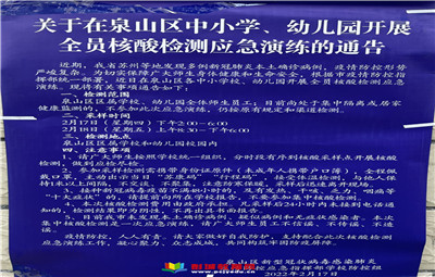 徐州教育:近期,我省蘇州等地發(fā)現(xiàn)多例新冠肺炎本土確診病例,疫情防控形勢嚴(yán)峻復(fù)雜。為切實(shí)保障廣大師生身體健康和生命安全,根據(jù)市疫情防控指揮部統(tǒng)一部署,在泉山區(qū)教育局、奎山街道辦事