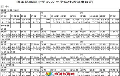 漢王鎮(zhèn)北望小學(xué)2020年學(xué)生體質(zhì)健康公示(1)