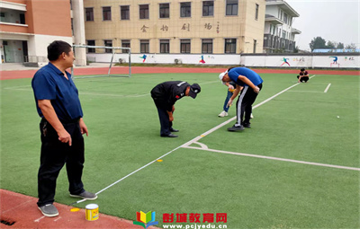 定點(diǎn)著色,規(guī)范場地——黃集鎮(zhèn)金樓小學(xué)教師為操場繪制點(diǎn)位