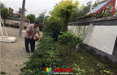 銅山區(qū)單集鎮(zhèn)八湖小學(xué)修剪花木迎開學(xué)