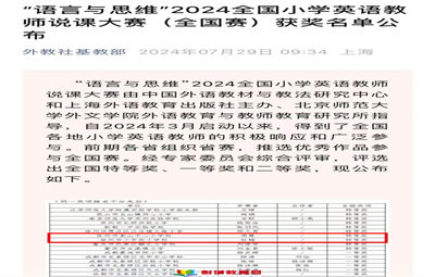 彭城教育:喜報近日,外教社基教部公布了“語言與思維”2024全國中小學英語教師說課大賽的獲獎名單,我區(qū)英語教師團隊取得全國特等獎2名、全國一等獎5名,江蘇省特等獎2名、一等獎5名及二等獎9