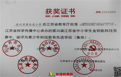 徐州教育:近日,在第35屆金鑰匙科技競賽與第11屆金鑰匙科學(xué)創(chuàng)想畫比賽中,徐州市碧水灣小學(xué)榮獲“青少年科技教育先進(jìn)學(xué)?!狈Q號,多位學(xué)生在此次比賽中榮獲佳績,其中,17名學(xué)生在科技競賽中