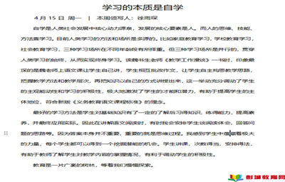 徐州教育:徐州市柳新鎮(zhèn)新橋?qū)嶒炐W繼續(xù)開展寫作接力活動。以“最好的學習是自學”為主題,開啟4月教育教學生活。教育寫作可以促成教師沉淀知識,豐富學識,加深對教育的認知和對學生的情感