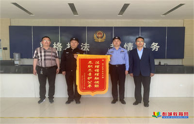 警校攜手護(hù)平安 普法教育潤心田——黃集鎮(zhèn)中心中學(xué)向?qū)俚嘏沙鏊?zèng)送錦旗