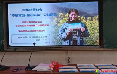 教育熱點:11月27日大課間,銅山區(qū)鄭集鎮(zhèn)中心中學(xué)在開課教室開展中華慈善總會“幸福家園·童心陪伴”公益活動第二期第三封回信發(fā)放儀式,該校參與藍信封書信筆友活動的學(xué)生齊聚現(xiàn)場,開啟與遠
