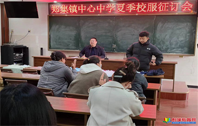 教育熱點:為進一步規(guī)范學(xué)校學(xué)生校服征訂工作,確保學(xué)生校服品質(zhì),鄭集鎮(zhèn)中心中學(xué)于3月17日中午13點召開了夏季校服征訂會。鄭集鎮(zhèn)中心中學(xué)政教校長郝武順、政教主任陳新、副主任王宏、王保京