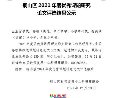 徐州教育:為提高教師的專業(yè)化水平,進一步提升教師教育科研的參與度,劉集鎮(zhèn)中心中學學校教育教學研究和課題實驗的最新成果,我校根據區(qū)教科所要求組織參加省市區(qū)課題論文評選結果已經揭曉