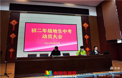 教育熱點:2021年3月18日,徐州市港務區(qū)城北中學舉行初二年級地生中考動員會,初二年級全體師生齊聚一堂,年級組長王老師,教務處秦主任,地生學科代表劉老師和曾老師,以及學生代表張洳瑄同學