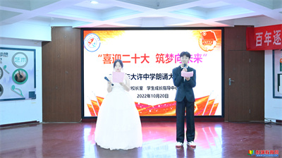 教育熱點:2022年10月20日晚,大許中學(xué)舉行“喜迎二十大,筑夢向未來”朗誦大賽決賽暨征文比賽頒獎儀式。出席本次朗誦比賽決賽的有張忠坡校長,馬杰副校長,學(xué)生成長指導(dǎo)中心竇建主任,高二年