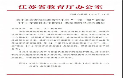 江蘇省教育廳點名表揚,一中案例上榜