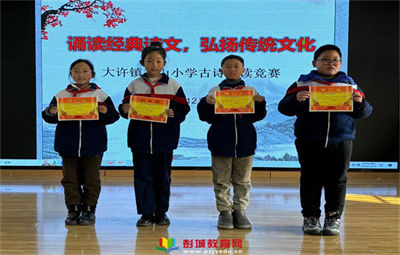 教育熱點:為弘揚祖國傳統(tǒng)文化,豐富學(xué)生古詩詞積累,陶冶學(xué)生的文化情操,落實晨誦效果,12月27日下午,大許太山小學(xué)開展以“誦讀經(jīng)典詩文弘揚傳統(tǒng)文化”為主題的古詩誦讀競賽。經(jīng)過前期海選