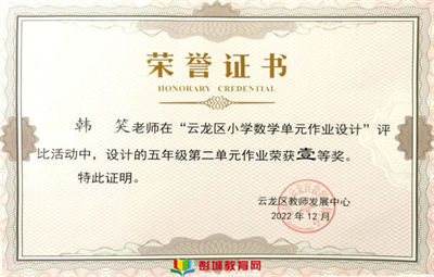 【華潤·喜報(bào)】學(xué)校兩位老師在“云龍區(qū)小學(xué)數(shù)學(xué)單元作業(yè)設(shè)計(jì)”評(píng)比活動(dòng)中喜獲佳績