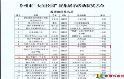 喜報(bào)丨熱烈祝賀徐州市第三十五中學(xué)朱景義、高亞東老師在徐州市“大美校園”征集展示活動(dòng)中獲獎(jiǎng)